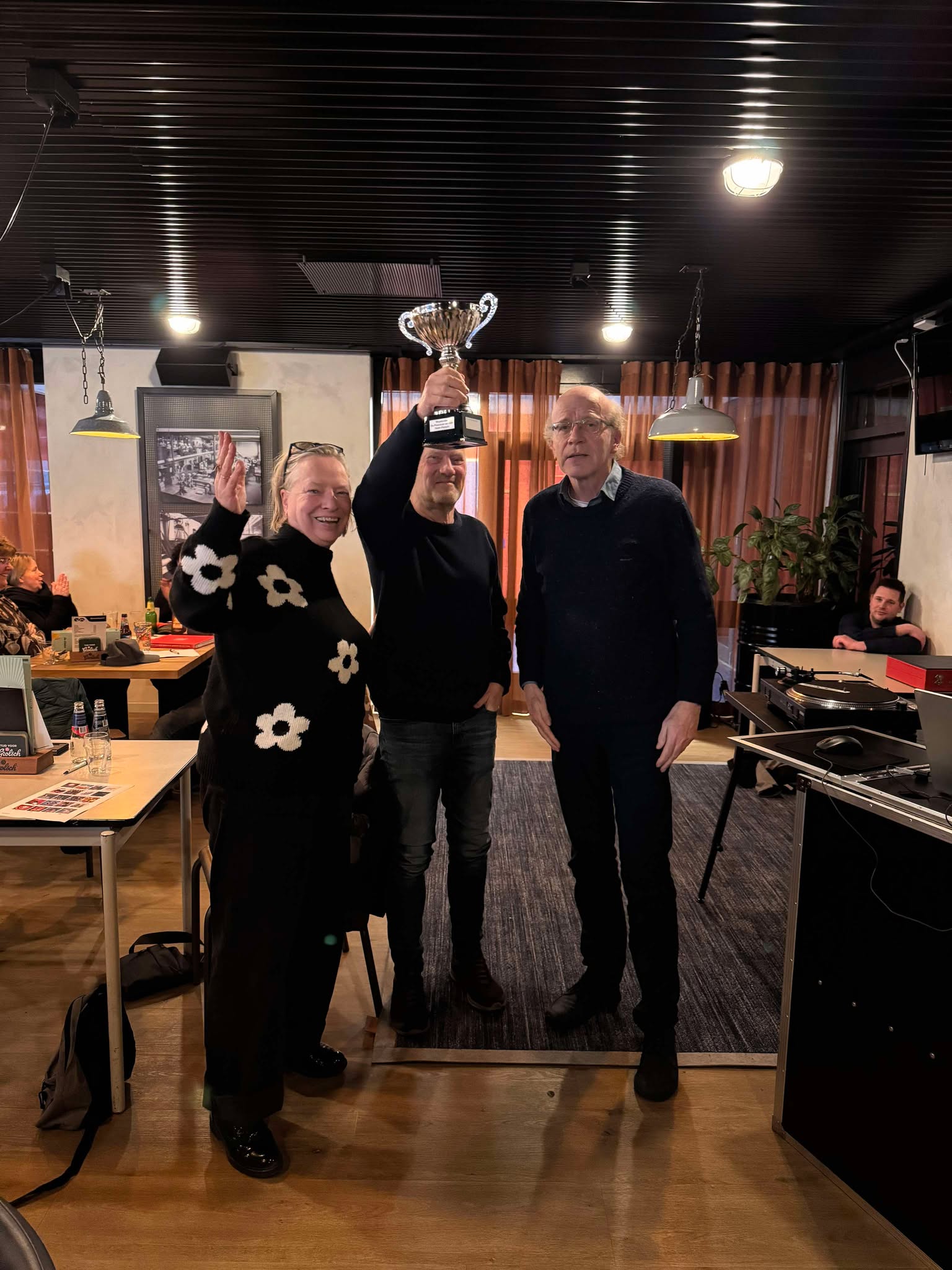 We moeten nog even landen na al die warme woorden en de lieve attenties. Een receptie die vanaf de eerste minuut al volliep, maar liefst 27 teams die meededen en het mooie, gezamenlijke cadeau dat wij van de teams ontvingen. Het was daardoor een popquiz die ons lang zal bijblijven. We hebben echt genoten! Lees verder Geslaagd afscheid Barbara, Niek en Erwin met druk bezette Achterin de Platenkast Popquiz